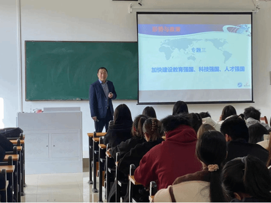 (通讯员 徐肖艺)为贯彻落实《教育部关于增强新时代高校“形势与政策”课建设的若干意见》精神,推动党政向导干部上讲台讲“形势与政策”课,12月8日下昼,校党委常委敖荣军走进2023级应用化学专业学生的课堂,为本科生作了题为《加速建设教育强国、科技强国、人才强国》的专题授课。