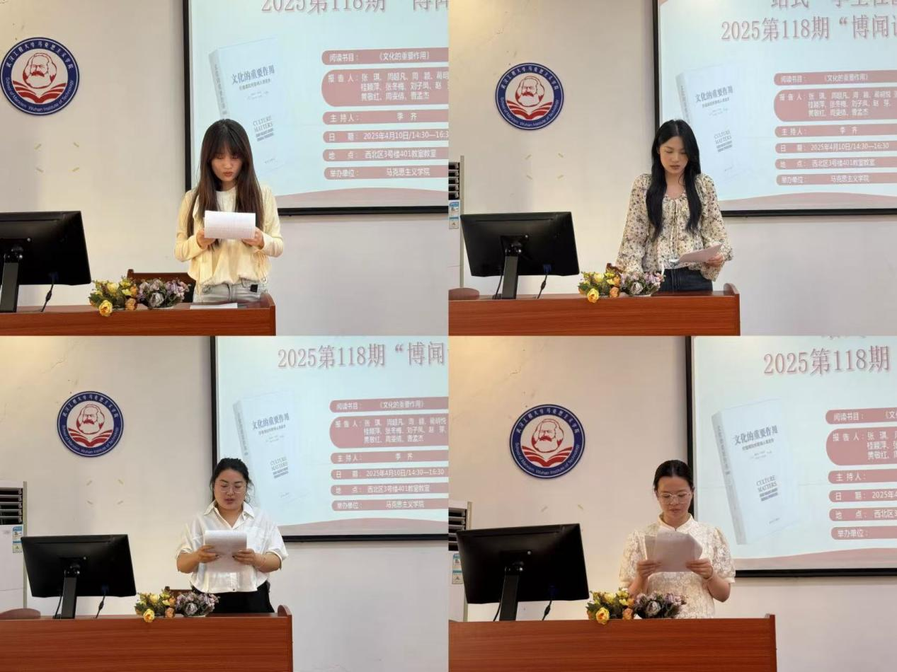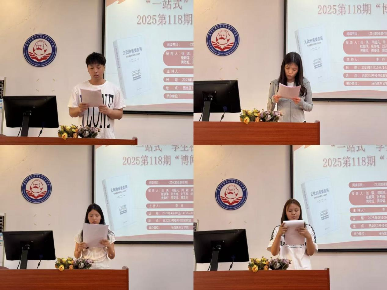 本网讯(通讯员 刘欣 张洋洋)4月10号下昼,我院第118期“博闻念书会”在人生就是博一站式学生社区中心(求是楼401课堂)顺遂召开。本次念书会围绕着亨廷顿、哈里森的著作《文化的主要作用》睁开讨论。本次念书会由李齐先生主持。加入此次念书会的11位研究生主讲人为24级周雯情、张琪、周颖、周超凡、黄敬红、曹孟杰、刘子凤、张冬梅、葛明悦 、桂颖萍、赵芽。院学术部“博闻念书会”运动小组组织了此次念书会。