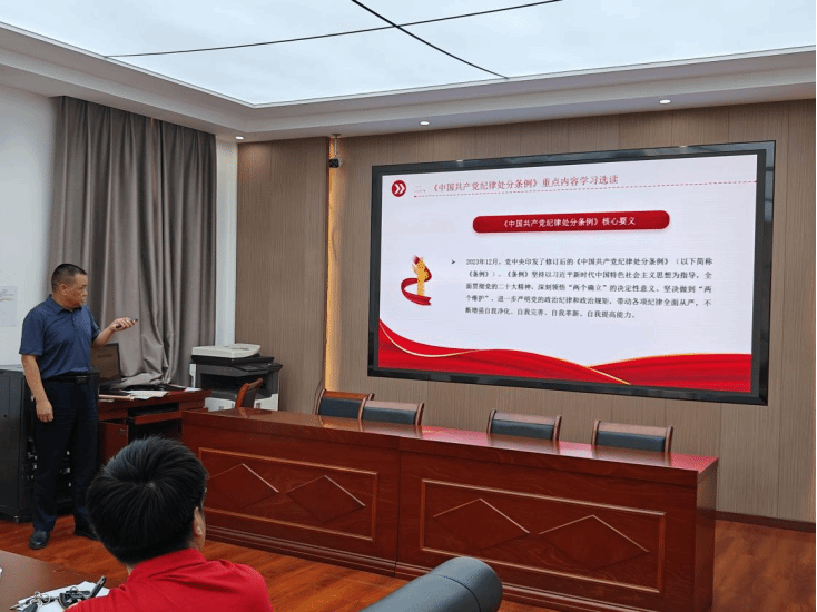 课上,刘卫民从“开展党纪学习教育的意义”“纪律处分条例重点内容的学习”以及“让遵规守纪成为自觉行动”三个方面来举行教学。