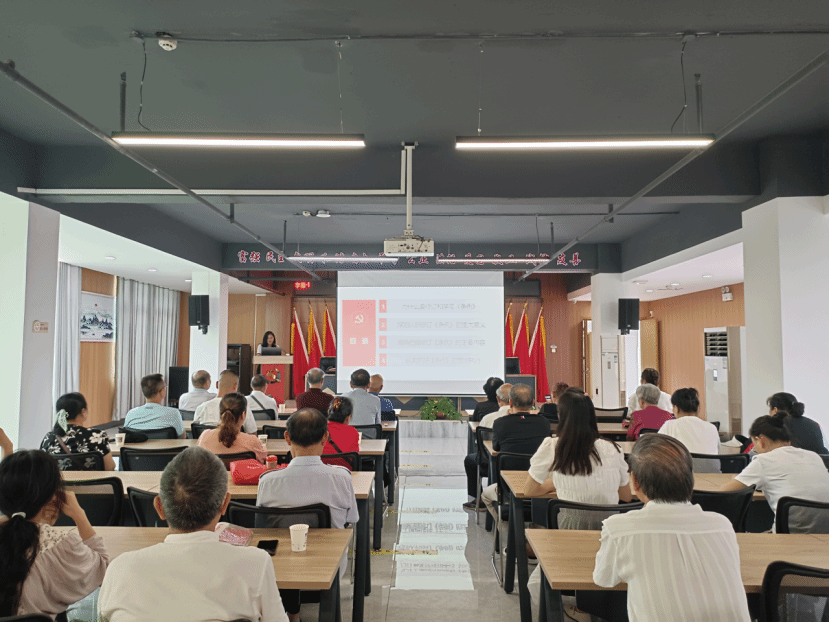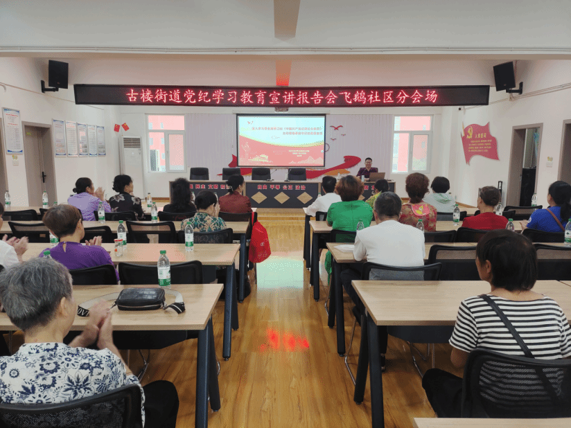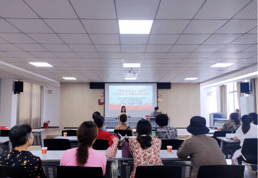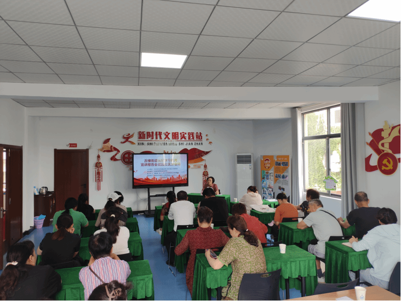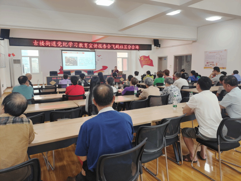 此次宣讲除在街道机关设置主会场外,还划分设置了北门社区、考棚社区和飞鹅社区等6个分会场,笼罩了全街10个社区和3个股经社,共计约400名干部群众加入。