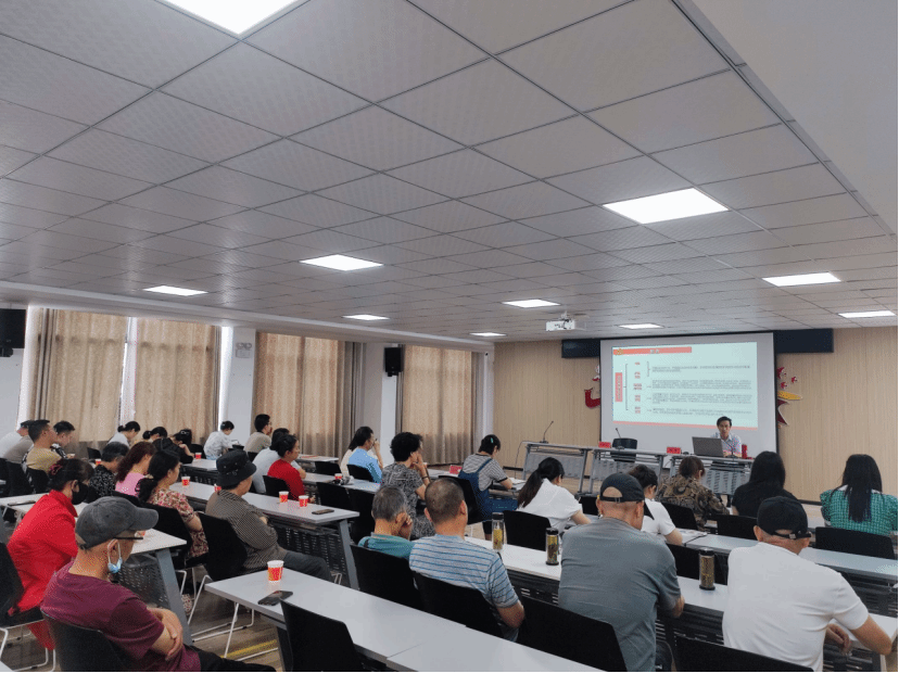 (在鄂城区主会场,武汉工程大学组织部常务副部长、王涛教授为100人授课)