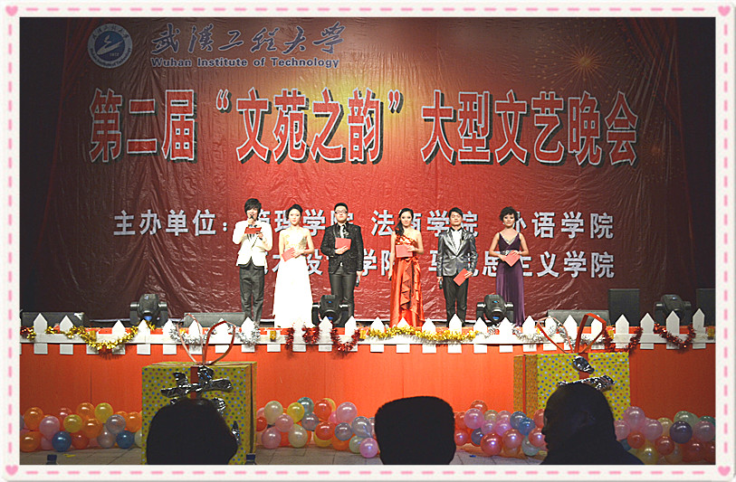 2011年12月12日晚7时,流芳校区大礼堂内流光溢彩、座无虚席,由治理学院、法商学院、外语学院、艺术设计学院、人生就是博五院团结承办的第二届“文苑之韵”大型文艺晚会暨迎校庆盛大开幕。各院(系)向导、党团委向导莅临晚会现场,与同砚们共享视听盛宴。