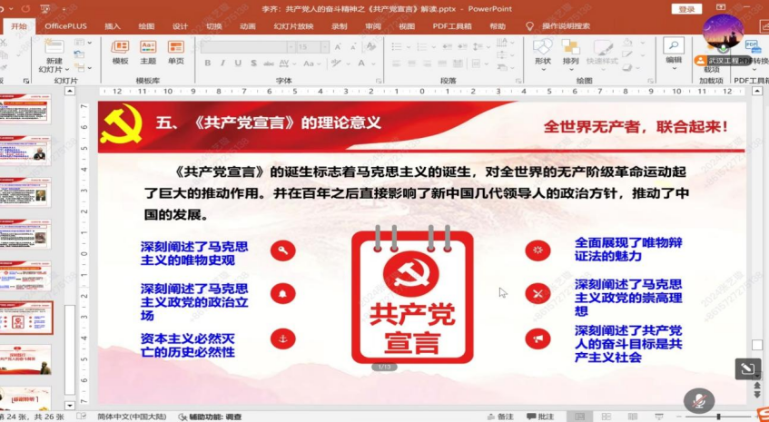 Ëæºó£¬ÀîÆëÏÈÉúÇ¿µ÷ÁË¡¶¹²²úµ³ÐûÑÔ¡·µÄÀíÂÛÒâÒ壬¡¶ÐûÑÔ¡·µÄÐγɱê¼Ç×ÅÂí¿Ë˼Ö÷ÒåµÄ½µÉú£¬²»µ«ÖÜȫչÏÖÁËΨÎï±çÖ¤·¨µÄ÷ÈÁ¦¡¢Éî¿ÌÐðÊöÁËÀúʷΨÎïÖ÷Òå»ùÀ´Ô´Àí£¬Ã÷È·ÁËÂí¿Ë˼Ö÷ÒåÕþµ³µÄÕþÖÎ̬¶ÈÓë¸ßÉÐÀíÏ룬չÏÖÁË×Ê±ÊÆ÷ÒåÒ»¶¨éæÃüºÍ¹²²úÖ÷ÒåÒ»¶¨ÊµÏÖµÄÉç»áÉú³¤¼ÍÂÉ£¬ÒÔ¼°¹²²úµ³ÈËÒÔ¹²²úÖ÷ÒåÉç»áΪ¶·ÕùÄ¿µÄµÄÀúʷʹÃü ¡£