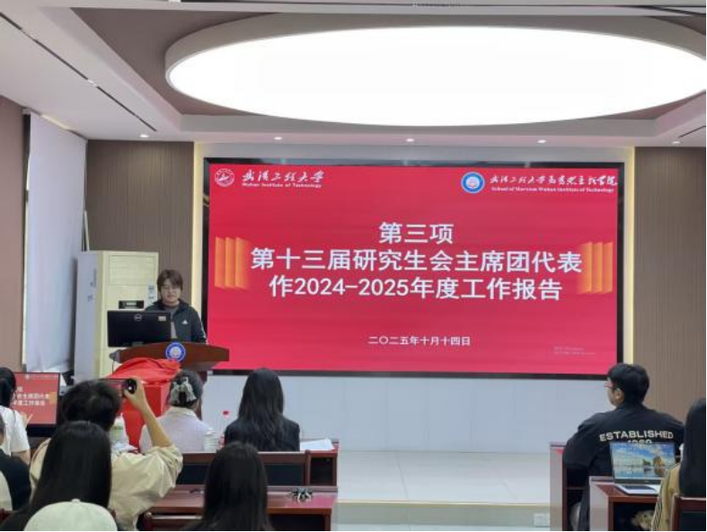 第十三届研究生会主席团代表李盈萱作事情报告,系统回首了已往一年研会在头脑引领、学术立异、文体运动、权益服务等方面的事情效果。报告指出,研会通过举行“红心向党”红色宣讲团、“乡音课堂”进下层等品牌运动,推动理论学习与实践育人深度融合;依托“求是论坛”“博闻念书会”等平台,营造浓重学术气氛,助力研究生科研能力提升。