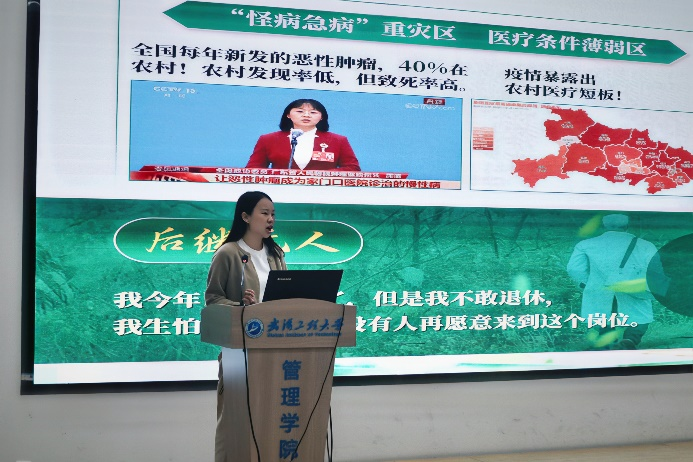 “医路偕行”实践队代表徐嘉婧围绕下层医疗与AI赋能睁开汇报,分享团队深入触摸下层医疗脉搏的实践履历,以及探寻AI赋能医疗路径的探索效果,彰显青年学子的专业实践与立异思索。