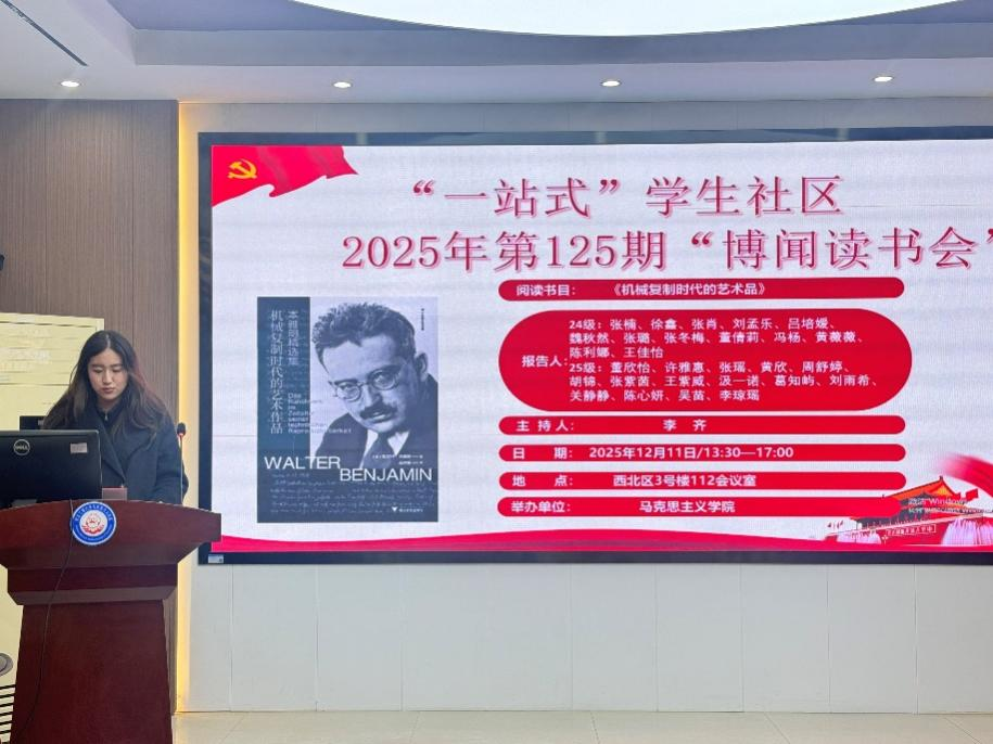 ±¾ÍøÑ¶£¨Í¨Ñ¶Ô± ÕÅç÷ ÕÅÒÕ诣©2025Äê12ÔÂ11ºÅÏÂÖ磬ÎÒÔº¡°Ò»Õ¾Ê½¡±ÉçÇøµÚ125ÆÚ¡°²©ÎÅÄîÊé»á¡±ÔÚÈËÉú¾ÍÊDz©ÇóÊÇÂ¥112¾Û»áÊÒ˳ËìÕÙ¿ª¡£±¾´ÎÄîÊé»áÒÔ¡°»úе¸´ÖÆÊÖÒÕ¶ÔÒÕÊõʵÖÊ¡¢¹¦Ð§¼°Éç»á¼ÛÖµµÄÀå¸ï¡±ÎªÖ÷Ìâ£¬Î§ÈÆ×ÅÍß¶ûÌØ¡¤±¾ÑÅÃ÷µÄÖø×÷¡¶»úе¸´ÖÆÊ±´úµÄÒÕÊõÆ·¡·Õö¿ªÌÖÂÛ¡£±¾´ÎÄîÊé»áÓÉÀîÆëÏÈÉúÖ÷³Ö¡£¼ÓÈë´Ë´ÎÄîÊé»áµÄ27λÑо¿ÉúÖ÷½²ÈË»®·ÖΪ2024¼¶ÁõÃÏÀÖ¡¢ÂÀÅàæÂ¡¢ÎºÇïÈ»¡¢ÕÅè´¡¢ÕŶ¬Ã·¡¢¶Ù»Àò¡¢·ëÑî¡¢ÐìöΡ¢»ÆÞ±Þ±¡¢³ÂÀûÄÈ¡¢ÕÅ骡¢ÕÅФÒÔ¼°2025¼¶¶ÐÀâù¡¢ÐíÑŻۡ¢ÕÅÑþ¡¢»ÆÐÀ¡¢ÖÜÊææÃ¡¢ºú½õ¡¢ÕÅ×ÏÒð¡¢Íõ×ÏÍþ¡¢¼³Ò»Åµ¡¢¸ðÖªÓì¡¢ÁõÓêÏ£¡¢¹ØÇÄÇÄ¡¢ÀîÇíÑþ¡¢³ÂÐÄåû¡¢ÎâÃç¡£Ôº¡°²©ÎÅÄîÊé»á¡±Ñ§ÊõÔ˶¯ÊÂÇéС×é×éÖ¯ÁË´Ë´ÎÄîÊé»á¡£