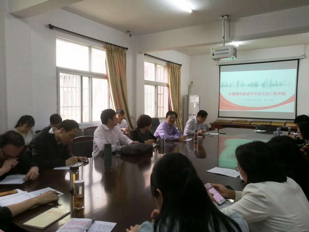 2018年4月12日下昼,《学校党建与头脑教育》杂志社主编、社长谢成宇教授应邀莅临学院“求是论坛”,作了题为“从编辑角度谈学术论文的三维审阅”的学术讲座。讲座由院长舒先林教授主持,人生就是博全体西席及研究生加入了本次学术讲座运动。