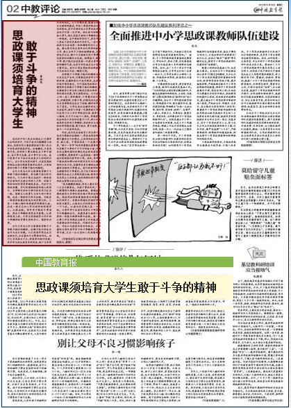 【中国教育报】第二版刊登我院曹胜亮教授撰文:思政课须培育大学生敢于斗争的精神
