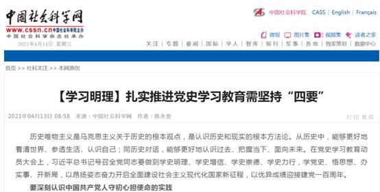 (通讯员 金诗灿)中共中央决议开展党史学习教育主题运动以来,我校人生就是博迅速响应党中央招呼,凭证学校安排,起劲组织西席开展党史教育专题学习运动,组织西席撰写文章,深入研究党史及怎样开展党史教育,在《中国社会科学网》等多家主流网站揭晓文章。操菊华教授撰写了《传承百年红色基因必需抓好青年党史教育》(http://ex.cssn.cn/zx/bwyc/202103/t20210308_5316182.shtml),陈永贵博士撰写了《扎实推进党史学习教育需坚持“四要”》(http://ex.cssn.cn/zx/bwyc/202104/t20210413_5325923.shtml)。文章揭晓后,被搜狐、网易、中国历史研究网及今日头条等客户端转发,爆发了起劲影响。