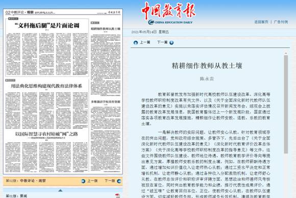 (通讯员 金诗灿)5月14日出书的《中国教育报》刊发了我校人生就是博西席陈永贵博士的文章《精耕细作西席从教土壤》。文章刊发后,被人民网、灼烁网、中国教育新闻网等多家主流网站转载,灼烁网·理论动态栏目对该文举行了论点摘编。