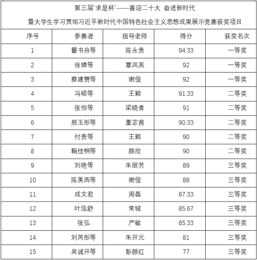 经由“概论”教研室全体任课西席前期全心准备和悉心指导 ,15组参赛选手脱颖而出 ,乐成获得第三届“求是杯”决赛资格。参赛选手牢牢围绕“喜迎党的二十大 ,奋进新时代”的时代主题 ,团结自己学习贯彻习近平新时代中国特色社会主义头脑的效果睁开强烈的角逐。列位选手从差别角度的精彩讲演赢得了场下评委及学生的强烈共识 ,扩展了我们的知识面和知识水平 ,让我们的精神层面获得了很大的提升 ,再次加深了我们关于习近平新时代中国特色社会主义头脑的明确。