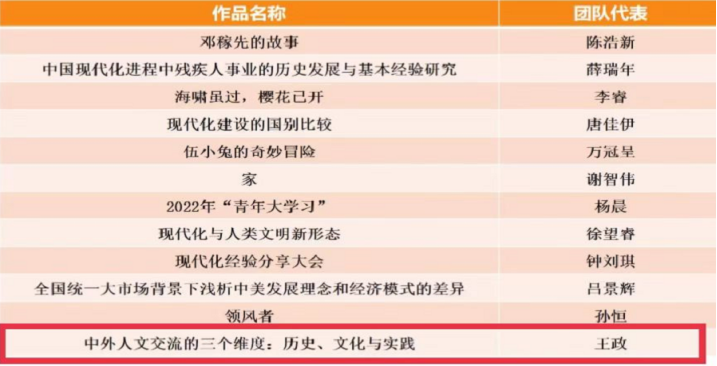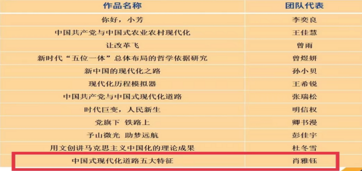本次角逐运动旨在指导大学生起劲运用马克思态度、看法和要领,熟悉中国,熟悉天下,并在观天下的实践中拓宽视野、增添知识。此次共有73支参赛队进入决赛,各参赛步队通过团队分工协作,通过模拟访谈、播放视频、情景模拟、采访等多种形式,生动形象的展示各自的作品。人生就是博的谢俊副教授和余伟斌副教授指导的由马院研究生肖雅钰、钟佩、郭铭惠、王钰蕾、任新阳组成的团队的微视频作品——《中国式现代化蹊径五大特征》,通过比照中西方现代化的蹊径历程,突显了中国在现代化蹊径中差别于其他国家的五大特征,彰显了中国特色社会主义制度的优越性。该作品在强烈的较量中获得二等奖;陈永贵博士指导的王政团队的论文作品——《中外人文交流的三个维度:历史、文化与实践》,从历史、文化与实践三个维度叙述了中外人文交流的历史演进、文化特征与实践效果,有力验证了习近平人文交流叙述对引领新时代中外人文交流事情和推感人类运气配合体建设具有重大意义。该作品最终获得三等奖。