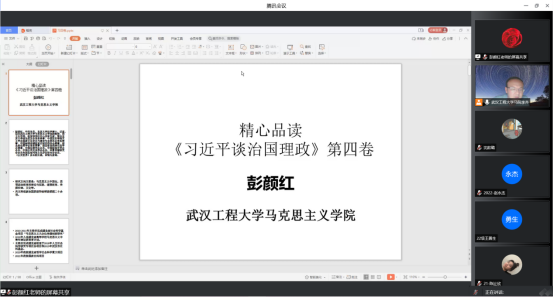ÅíÑÕºìÏÈÉúÒÔ¡°È«ÐÄÆ·¶Á¡¶Ï°½üƽ̸ÖιúÀíÕþ¡·µÚËÄ¾í¡±ÎªÌ⣬»®·ÖÏÈÈÝÁË¡¶Ï°½üƽ̸ÖιúÀíÕþ¡·µÚËľíÖØ´óÒâÒåºÍÖ÷Òª¼ÛÖµ¡¢Ö÷ÒªÄÚÈÝÒÔ¼°ÔõÑùѧϰ¡¶Ï°½üƽ̸ÖιúÀíÕþ¡·µÚËľíÈý¸ö·½ÃæµÄÄÚÈÝ¡£