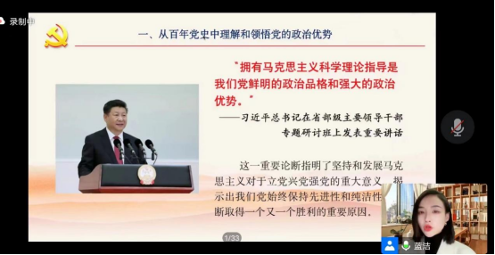 最后,兰洁博士招呼全体学生在新时代新阶段要一直提高政治判断力、政治意会力和政治执行力,提振信心和斗志,以“赶考”的苏醒和坚定答好新时代答卷,在顺应天下时势中誊写中华民族伟大再起的新篇章。