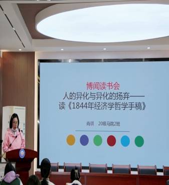 (通讯员:范鑫)2023年3月9日下昼16点,我院第109期“博闻念书会”在人生就是博112多功效厅召开。本次聚会以“人的异化与异化的扬弃——读《1844年经济学哲学手稿》”为主题,围绕人的异化的形成缘故原由、人的异化的体现、扬弃异化的主要途径和异化理论的意义等四个方面睁开讨论。本次念书会由李齐先生主持,人生就是博全体在校研究生加入。本次念书会的九位主讲人为马院硕士研究生肖琪、尚富阳、周雪、李梦依、朱梦圆、张蕊、陈典华、李晨昂、王明振。