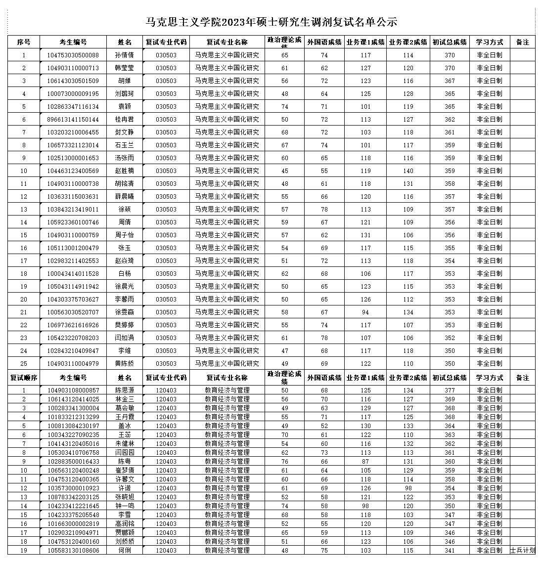 人生就是博2023年硕士研究生复试效果公示(调剂)