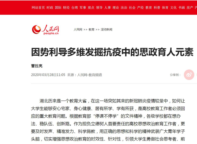 £¨Í¨Ñ¶Ô± ÑÓ·É£©3ÔÂ28ÈÕ£¬ÈËÃñÍø¡°½ÌÓýƵµÀ¡±¿¯µÇÁËÎÒУÈËÉú¾ÍÊDz©Ôº³¤²ÜʤÁÁ½ÌÊÚÎÄÕ¡¶ÒòÊÆÀûµ¼¶àά¾ò¿Í¿¹ÒßÖеÄ˼ÕþÓýÈËÔªËØ¡·¡£